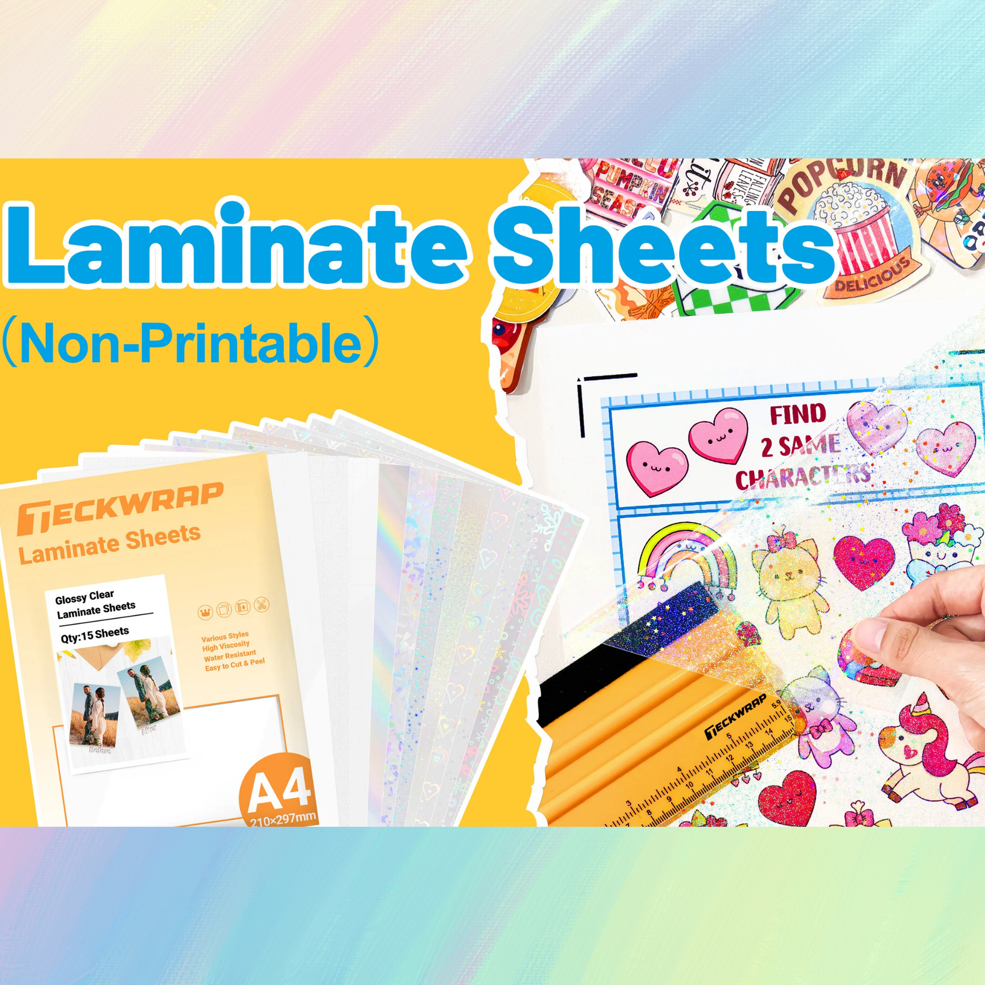 TeckWrap Craft’ın A4 Laminasyon Kaplama serisi, tasarımlarını hem güçlü bir koruyucu tabakayla güvence altına alır hem de seçtiğin efekti ekleyerek stickerlarını daha canlı, daha parlak ve daha profesyonel bir görünüme kavuşturur.