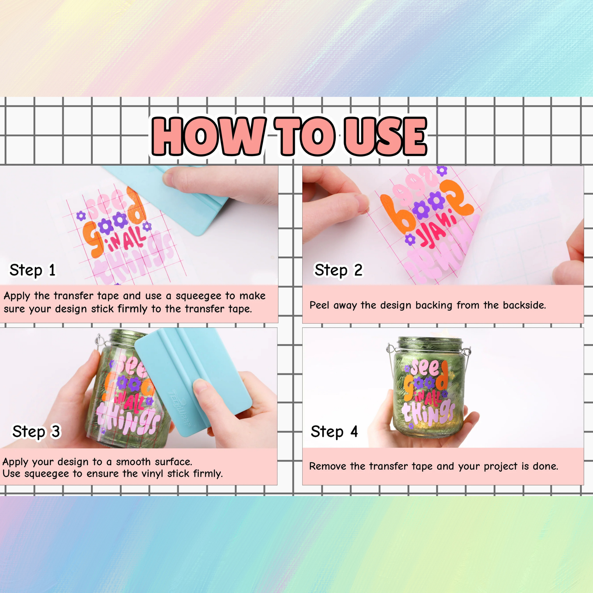 Bu yüksek kaliteli Transfer Tape, çoğu yapışkanlı vinil türüyle mükemmel uyum sağlamak için orta seviyede yapışkan gücüyle tasarlanmıştır.