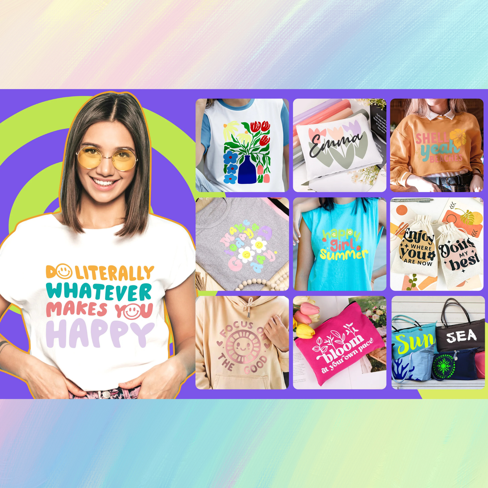 Tişörtler, kapüşonlular, çantalar, şapkalar, bebek ürünleri, ev dekorasyonu, kişisel projeler ve özel tasarım tekstil ürünleri için idealdir.